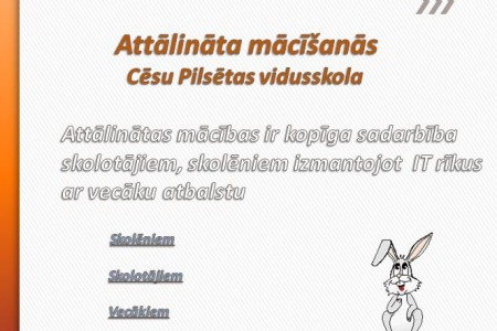 Attālinātas mācības ir kopīga sadarbība skolotājiem, skolēniem izmantojot IT rīkus ar vecāku atbalstu Macies_CPV_05 Macies_CPV_05 Skolēniem Mācās attālināti pēc stundu saraksta Veido savu dienas režīmu Pilda skolotāju norādījumus un uzsāk attālinātās mācīšanās procesu( tiek uzdoti uzdevumi) Ar mācību priekšmeta skolotājiem skolēns var sazināties stundas laikā un konsultāciju laikā e- klasē, telefoniski Norādītajā termiņā skolēni iesūta […]